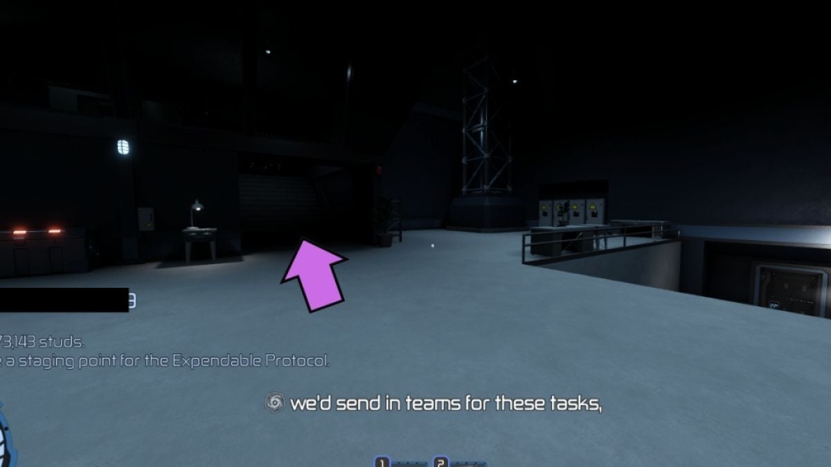 When you get off the submarine, you first need to pick up the paper from the table with the lamp on the left. Once you have it, you can go down the stairs to door 40 where you will start your adventure. The rooms count down from 40, so your goal is to get to the lowest number, zero.